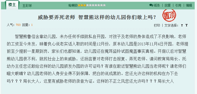 智慧熊魯信含章幼兒園,未辦任何手續就私自開園,對孩子及老師的身體造成了不良影響,老師的工資至今未發,這樣的幼兒園,您敢讓孩子去嗎?...... [詳情]