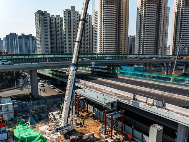 “提速換擋”山東路-鞍山路東北象限連接匝道及地下停車場完成首跨鋼箱梁架設(shè)
