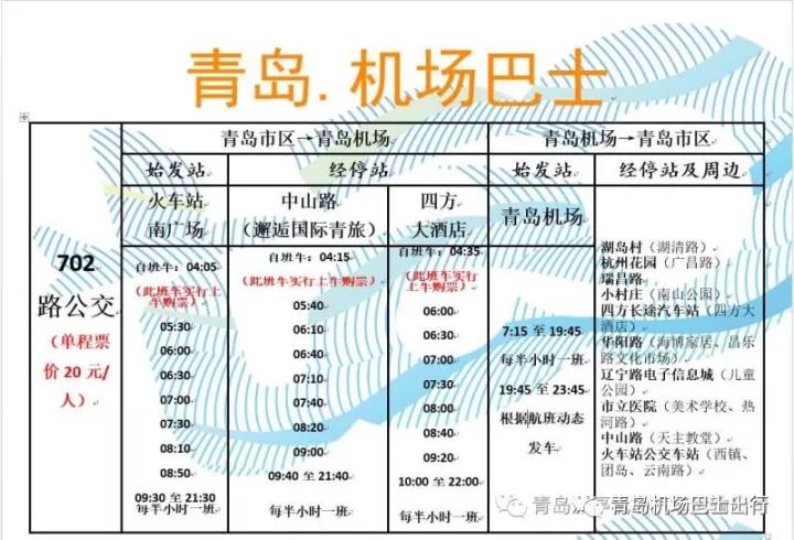起點:青島國際機場 經停:湖島村、杭州花園、瑞昌路,小村莊,四方長途汽車站,華陽路,遼寧路電子信息城,市立醫院,中山路,火車站公交站...[詳情]