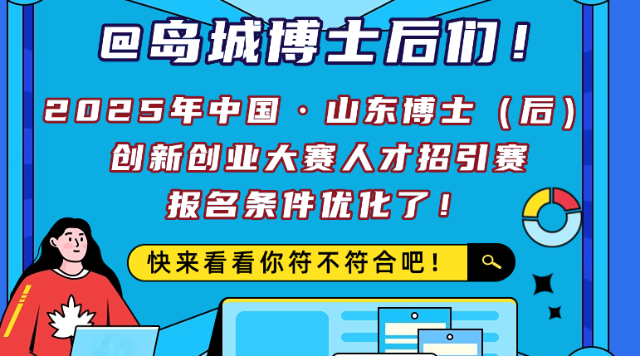 @島城博士后們!2025年中國·山東博士(后)創(chuàng)新創(chuàng)業(yè)大賽人才招引賽報名條件優(yōu)化了!快來看看你符不符合吧!